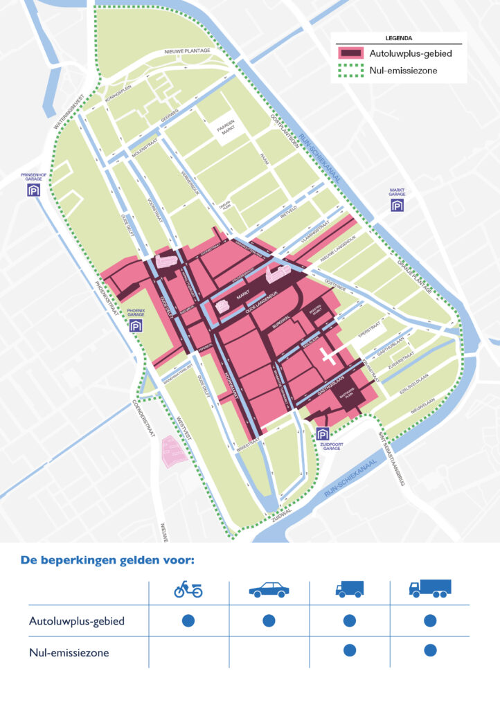 Let op: voor toegang tot het autoluwplus-gebied in de binnenstad, moet u een geldige ontheffing hebben. Vraag hier uw dagontheffing aan voor toegang. De dagontheffing is niet geldig op zaterdag van 10.00 – 17.00 uur.
